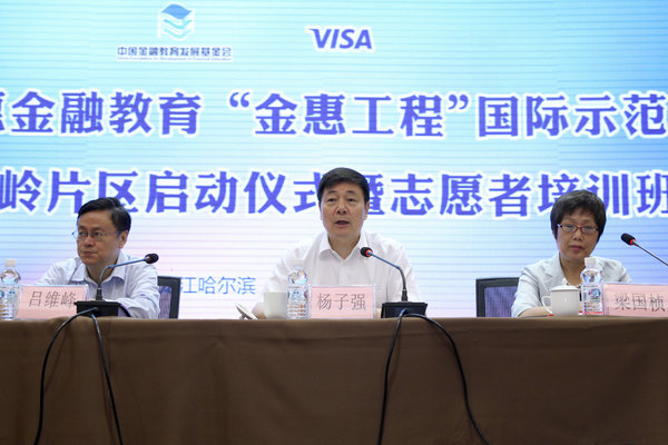 由中國金融教育發展基金會主辦的“中國普惠金融教育‘金惠工程’國際示范區啟動儀式暨志愿者培訓班”7月6日在哈爾濱舉辦。黑龍江省副省長呂維峰、中國人民銀行行長助理楊子強、中國金融教育發展基金會副秘書長梁國楨及VISA公司高級副總裁、全球金融普惠負責人司徒鴻等出席啟動儀式。