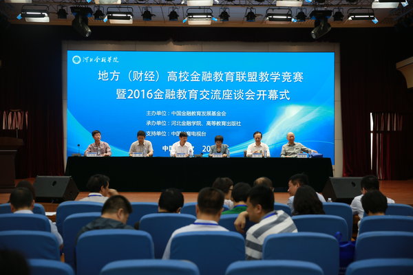 2016年5月28日,由中國金融教育發展基金會主辦,河北金融學院、高等教育出版社承辦的地方(財經)高校金融教育聯盟教學競賽暨2016金融教育交流座談會在河北金融學院隆重舉辦。中國金融教育發展基金會副秘書長梁國楨,河北金融學院院長、首屆聯盟輪值主席陳尊厚,河北省教育廳高教處副處長高明、高等教育出版社文科事業部副主任劉清田出席活動并致詞。