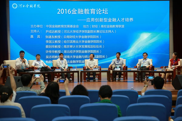 28日下午,在2016金融教育交流座談會上,云南財經大學金融學院院長張建友、哈爾濱商業大學金融學院院長李國義、南京審計大學發展規劃處處長蔡則祥、湖北經濟學院金融學院院長許傳華、湖南大學金融與統計學院副院長吳志明、河北金融學院金融系主任鮑靜海等6位嘉賓各抒己見,相互啟發,圍繞經濟新常態背景下應用型金融人才的培養與創新,結合本校的做法和經驗進行交流,為進一步推動全國高校應用型金融人才培養工作走向深入建言獻策。
