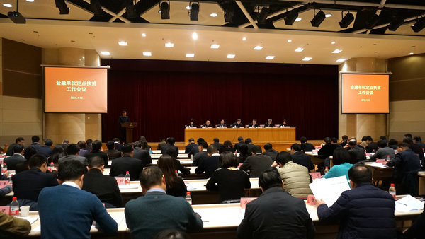 2016年1月12日,中國人民銀行召開金融單位暨人民銀行定點扶貧工作會議。會議深入學習黨的十八屆五中全會和中央扶貧開發工作會議精神,交流金融扶貧開發工作情況和經驗,安排部署脫貧攻堅金融扶貧工作。人民銀行副行長郭慶平、國務院扶貧辦國際合作和社會扶貧司司長李春光出席會議并講話。人民銀行機關黨常務副委書記齊小東主持會議。銀監會、證監會、保監會、外匯局、國際開發銀行及進出口銀行等24家金融單位代表出席了會議。人民銀行各司局、直屬企事業單位、人民銀行西安分行、人民銀行銅川市中心支行及陜西省銅川市人民政府代表出席會議。