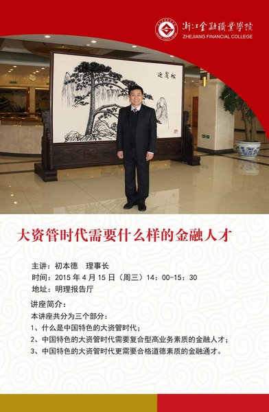 大資管時代需要什么樣的金融人才,高校如何培養造就具有合格道德素質的金融通才? 4月15日,在浙江金融職業學院舉行的專題報告會上,中國金融教育發展基金會理事長初本德就這兩個問題給出了答案。報告會由浙江省金融教育基金會秘書長、浙江金融職業學院副院長吳勝主持。