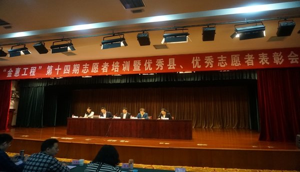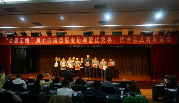 會議對2014年評估驗收中取得優秀成績的田東縣、宣漢縣、屏山縣、敘永縣、白水縣、隴縣、尉氏縣進行了表彰,并頒發“金惠工程優秀縣”獎牌。對廣西、陜西、云南、湖南、河南、山西、江西、四川8省(區)的108名優秀志愿者、優秀組織者進行了表彰,并頒發優秀志愿者、優秀組織者證書。
