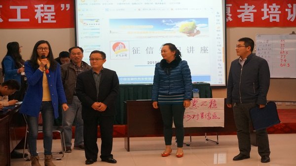 2015年3月31日至4月1日,“金惠工程”第十四期志愿者培訓班暨優秀縣、優秀志愿者表彰會在中國人民銀行鄭州培訓學院成功舉辦。出席會議的領導和嘉賓有中國金融教育發展基金會理事長初本德、專家吳小慶、培訓部主任毛妮妮及VISA公司中國區公關事務部總監王東。參加此次表彰會和培訓班的會議代表及學員有“金惠工程”優秀縣、優秀志愿者代表,還有來自山西、江西和四川3省8個縣的組織者和一級志愿者。