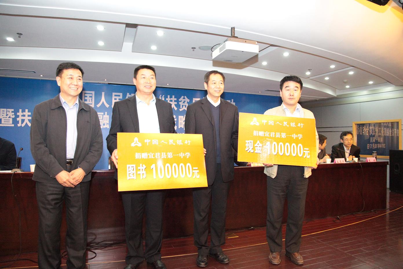 活動儀式上,中國人民銀行向人行銅川市中心支行授予了“全國扶貧開發金融服務工作聯系點”牌匾。李彬代表銅川市政府分別與人民銀行西安分行、農發行陜西省分行、農業銀行陜西省分行、郵儲銀行陜西省分行和陜西省信用聯社負責同志簽訂了扶貧開發金融服務工作合作戰略協議,在未來3—5年向我市投放90億元的信貸資金。齊小東、初本德分別代表中國人民銀行和中國金融教育發展基金會向宜君縣捐贈了10萬元助學款和價值10萬元的圖書。中國人民銀行團委書記王英杰宣讀了青年志愿者倡議書,號召人民銀行青年志愿者積極投身金融扶貧工作。人民銀行西安分行行長郭新明介紹了近年來陜西省金融扶貧工作取得的成績,并對下一步工作提出了要求。