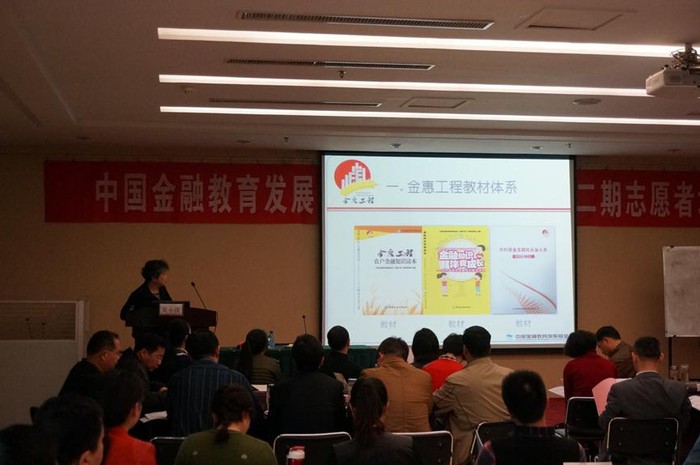 這次培訓(xùn)的主要內(nèi)容包括金惠工程介紹、金惠工程教材的編寫與使用、金惠工程管理制度解讀,成人參與式培訓(xùn)方法,志愿者精神與文化教育—平民教育家晏陽初事跡,項(xiàng)目拓展經(jīng)驗(yàn)交流和最新農(nóng)村金融政策解讀等。我會特別邀請了中國人民銀行研究局綜合政策研究室主任雷曜博士講授《農(nóng)村金融改革與發(fā)展》,瑞爾保護(hù)協(xié)會高級培訓(xùn)主管寸艷芳、張勇博士講授《參與式培訓(xùn)方法》,中國人民銀行巴中中心支行馬乙中講授《志愿者精神與文化》;還邀請了金惠工程志愿者和組織者作了經(jīng)驗(yàn)介紹,即中國郵政儲蓄銀行敘永縣支行牟聰講授《基層志愿者工作—我怎么做》,中國人民銀行滑縣支行郭艷茹講授《致力農(nóng)村金融教育,普惠千村萬戶》。我會按照金惠工程的拓展步驟舉辦志愿者培訓(xùn)班,旨在通過對志愿者的培訓(xùn),使其更加深入了解、認(rèn)識金惠工程和志愿者精神,以及向農(nóng)民傳授金融知識的方法。