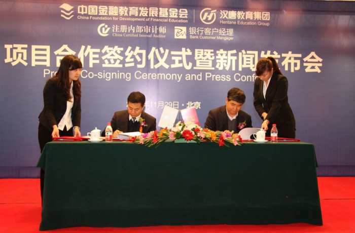 2013年11月29日,中國(guó)金融教育發(fā)展基金會(huì)和漢唐教育集團(tuán)在京隆重召開“注冊(cè)內(nèi)部審計(jì)師(CCIA)和銀行客戶經(jīng)理(BCM)項(xiàng)目簽約儀式暨新聞發(fā)布會(huì)”。