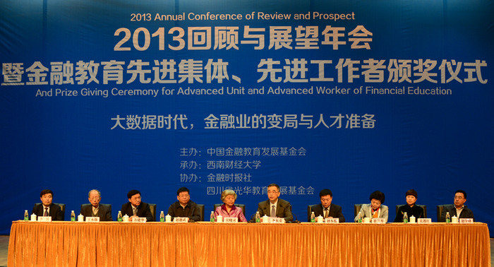 本報(bào)成都11月1日電 記者唐小惠 別凌 吳迪報(bào)道 中國(guó)金融教育發(fā)展基金會(huì)“2013回顧與展望年會(huì)暨金融教育先進(jìn)集體、先進(jìn)工作者頒獎(jiǎng)儀式”在成都舉行。年會(huì)由中國(guó)金融教育發(fā)展基金會(huì)主辦,西南財(cái)經(jīng)大學(xué)承辦,金融時(shí)報(bào)社、四川省光華教育發(fā)展基金會(huì)協(xié)辦。全國(guó)人大財(cái)經(jīng)委副主任委員吳曉靈,中國(guó)人民銀行副行長(zhǎng)李東榮出席會(huì)議。李東榮在會(huì)上做了主旨講話。