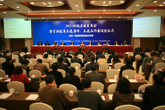 我會(huì)“2011回顧與展望年會(huì)暨金融教育先進(jìn)集體、先進(jìn)工作者頒獎(jiǎng)儀式”11月25日在杭州隆重舉行。全國人大財(cái)經(jīng)委副主任委員、我會(huì)理事長吳曉靈,中國人民銀行黨委委員、副行長杜金富出席會(huì)議并講話。中國銀監(jiān)會(huì)和中國證監(jiān)會(huì)分別委派代表出席會(huì)議;中國農(nóng)業(yè)發(fā)展銀行孟獻(xiàn)斌副行長,交通銀行華慶山監(jiān)事長,中信銀行黨委委員、首席合規(guī)官王連福等各金融機(jī)構(gòu)和金融院校負(fù)責(zé)人等140余位代表參加會(huì)議。